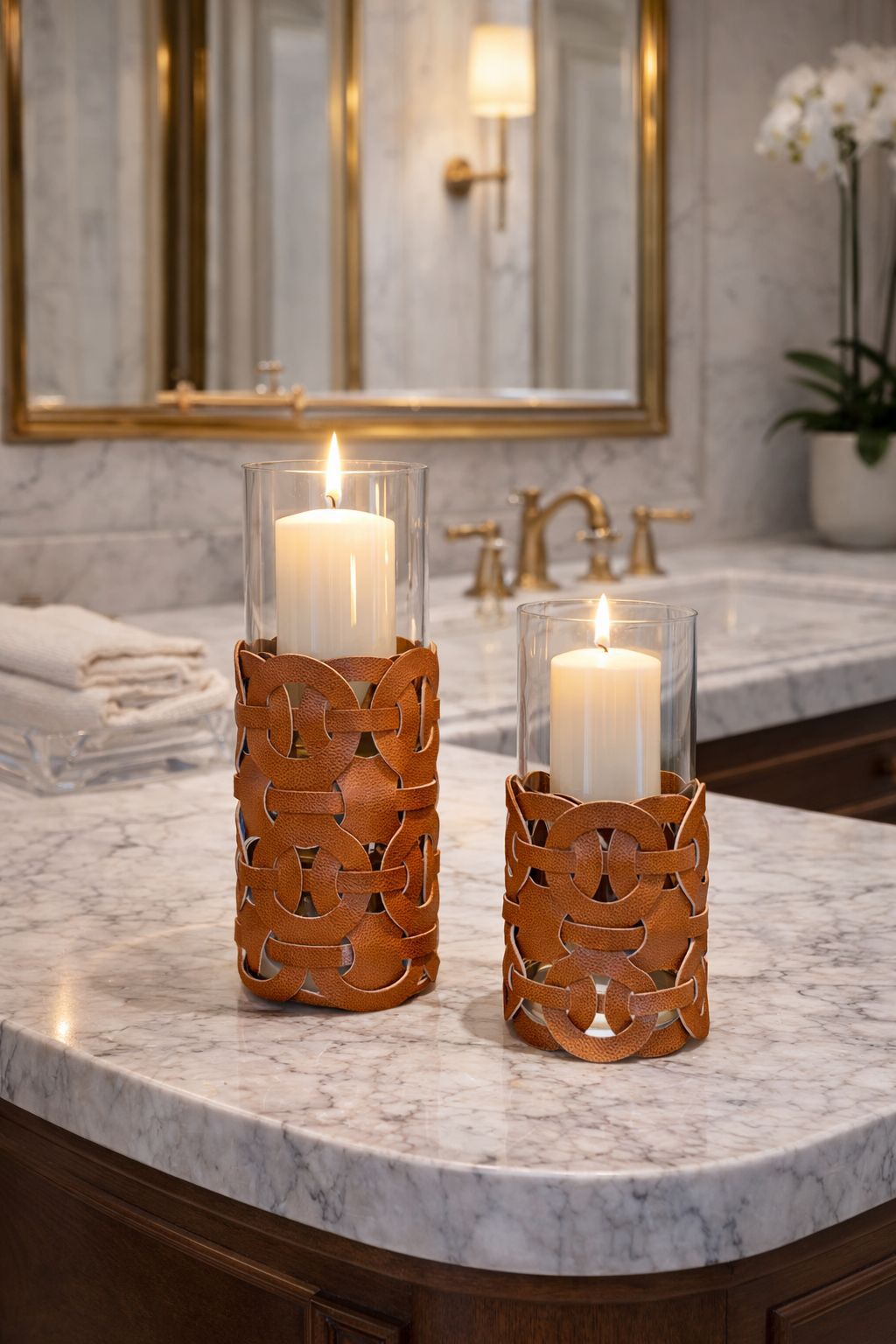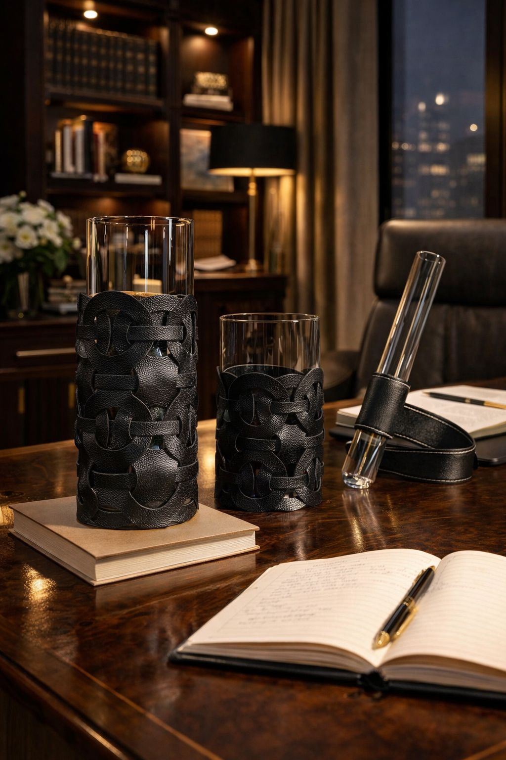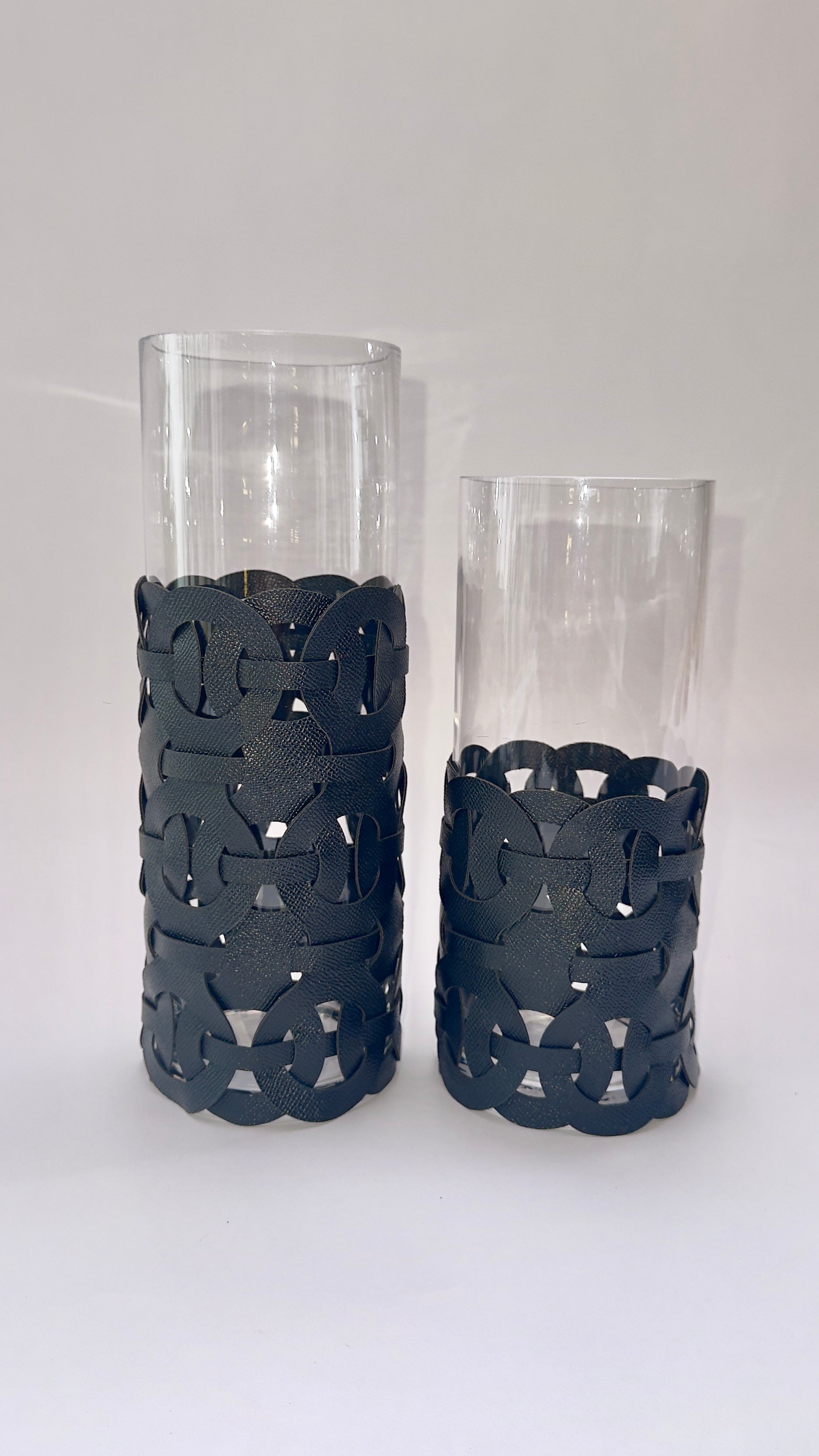 O toque contemporâneo que transforma seus vasos e lanternas. A Capa Treliça é o acessório indispensável para quem busca renovar a decoração com texturas nobres e design geométrico. Feita em couro sintético de alta durabilidade, sua trama vazada cria um jogo de sobreposição elegante, permitindo que o brilho do vidro ou a luz de velas transpareça através dos elos entrelaçados.