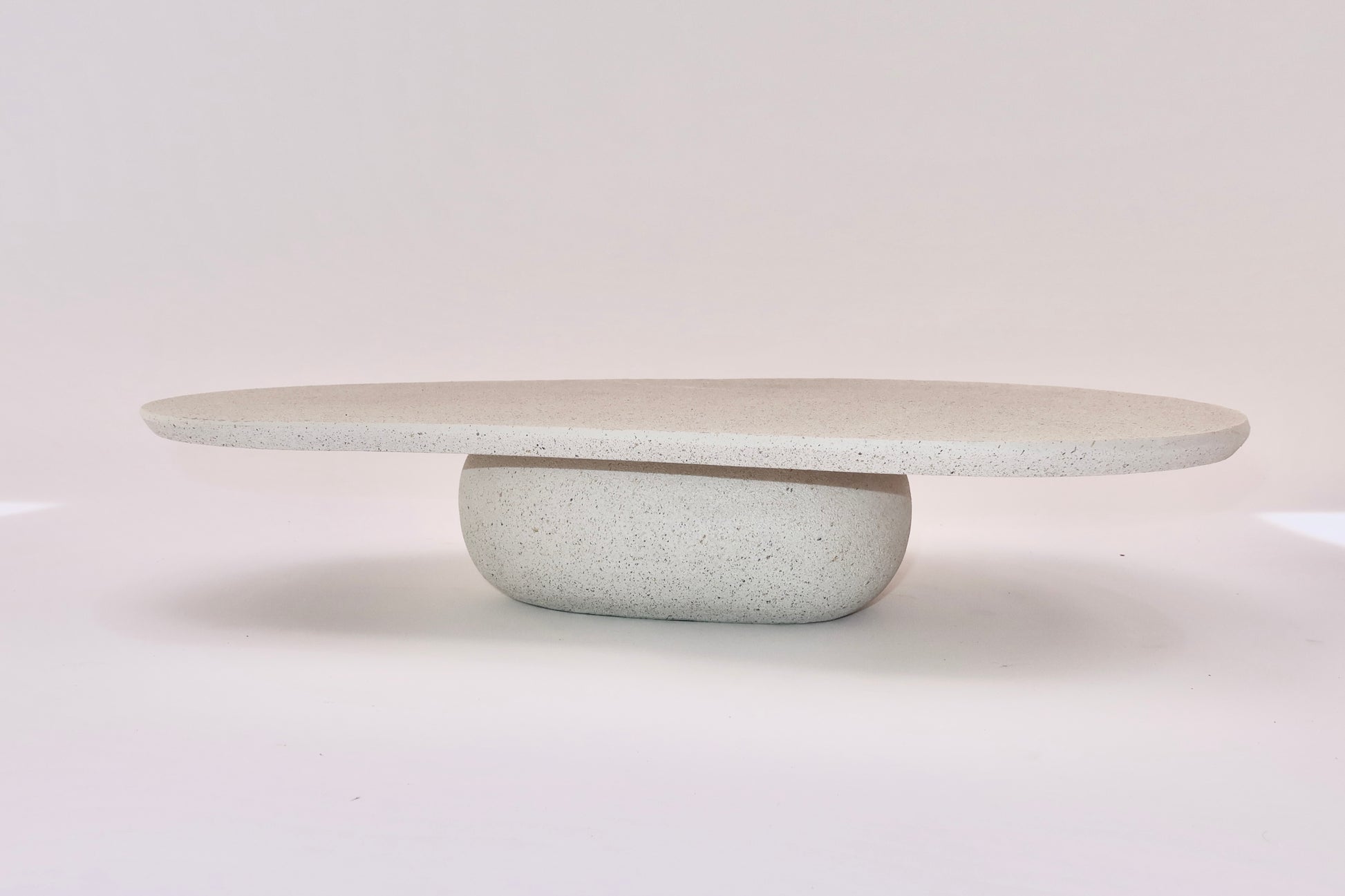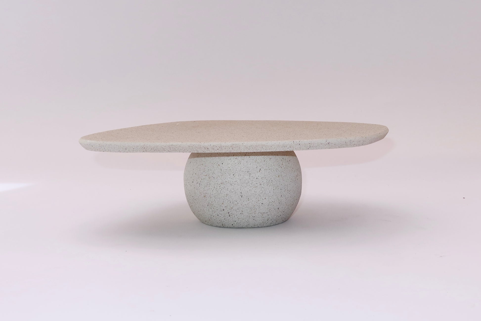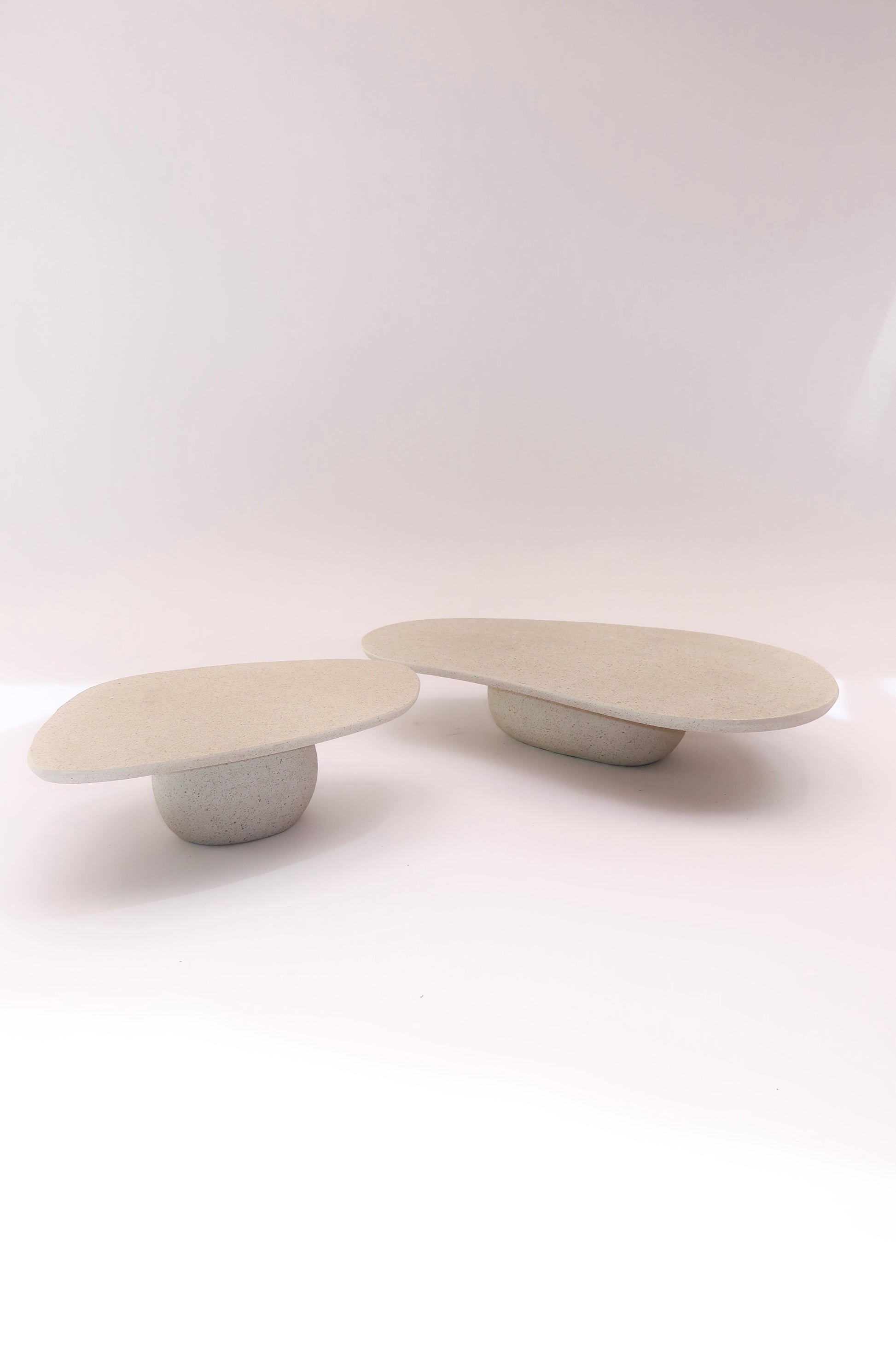 Silhueta Fluida: O prato superior possui bordas suaves e irregulares, criando um movimento visual leve que contrasta com a solidez da base.