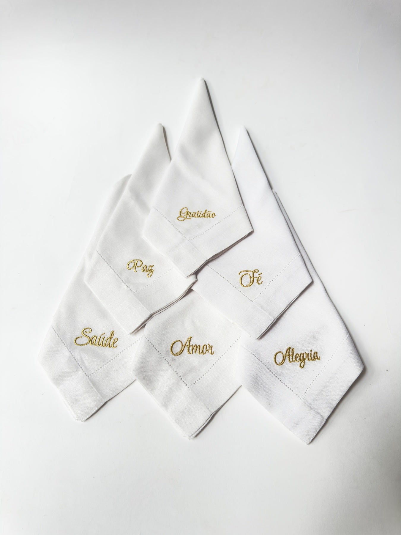 Guardanapo em linho com padronagem decorativa sofisticada, ideal para composições de mesa que buscam personalidade e elegância. O tecido de linho traz textura e acabamento premium à mesa posta.