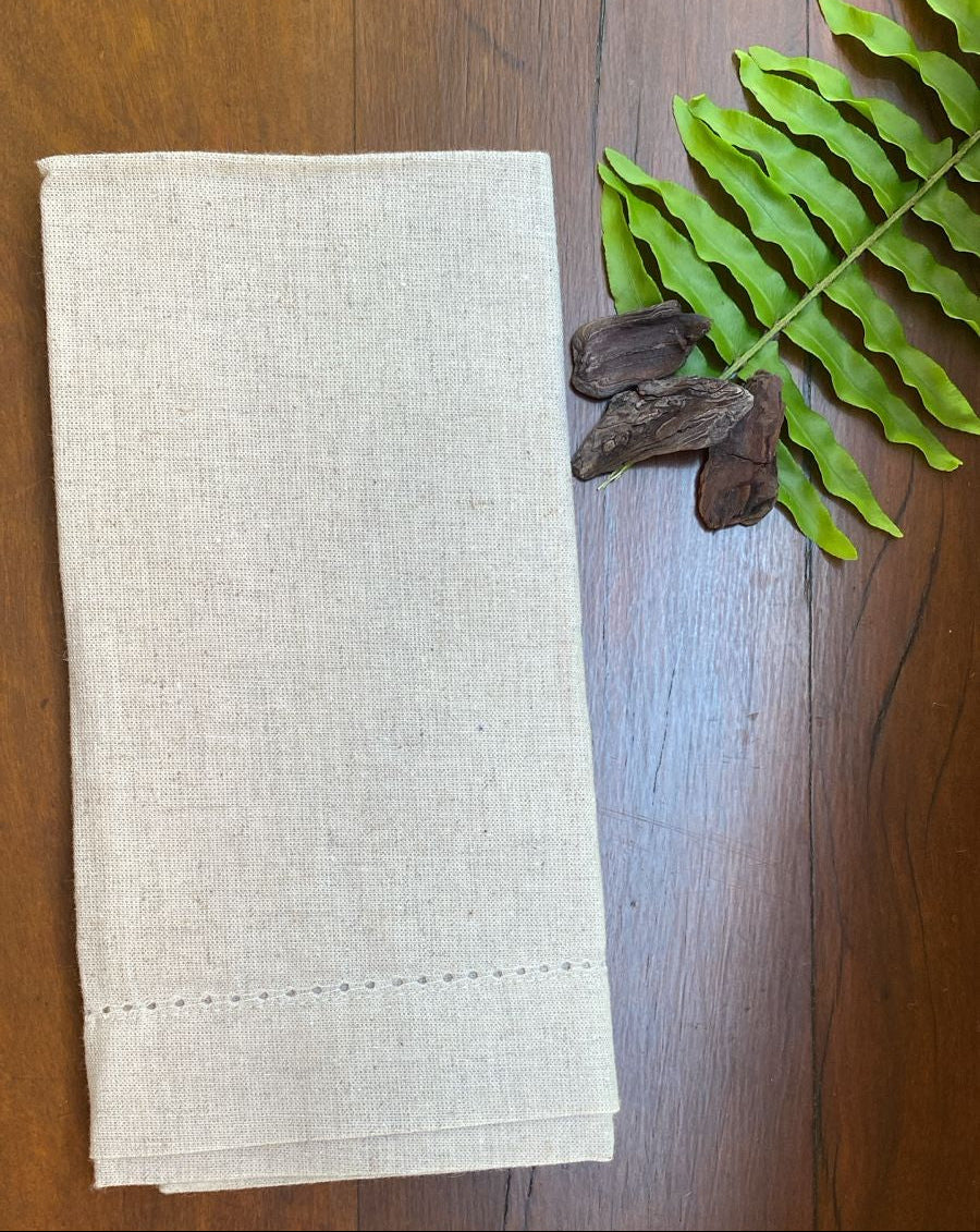 Guardanapo confeccionado em linho, com textura sofisticada e acabamento elegante, ideal para composições de mesa posta com estética orgânica, leve e contemporânea. O tamanho 50x50cm permite dobras decorativas que valorizam a apresentação da mesa.